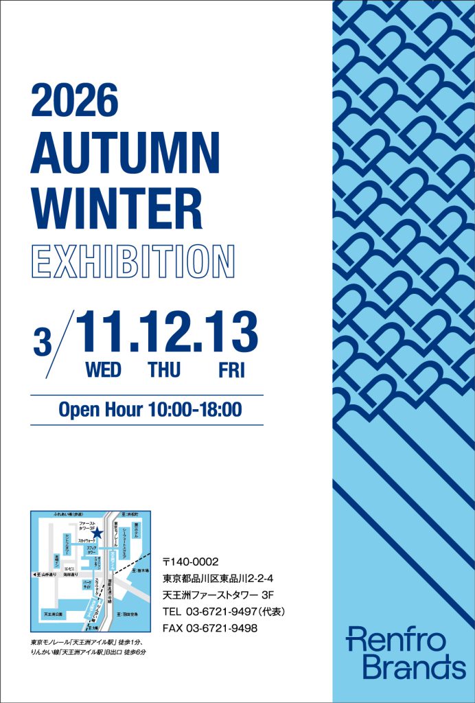 定期展示会、2026年秋冬展示会を下記日程で、東京、大阪で開催致します。