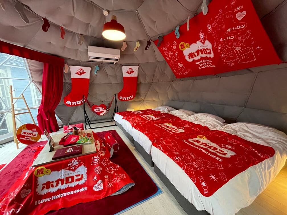 昨年に引き続き、ホカロンソックス×高滝湖グランピングリゾート コラボレーションルームが登場します。2025年11月1日(金)〜2026年2月28日(土)の期間限定で展開いたします。